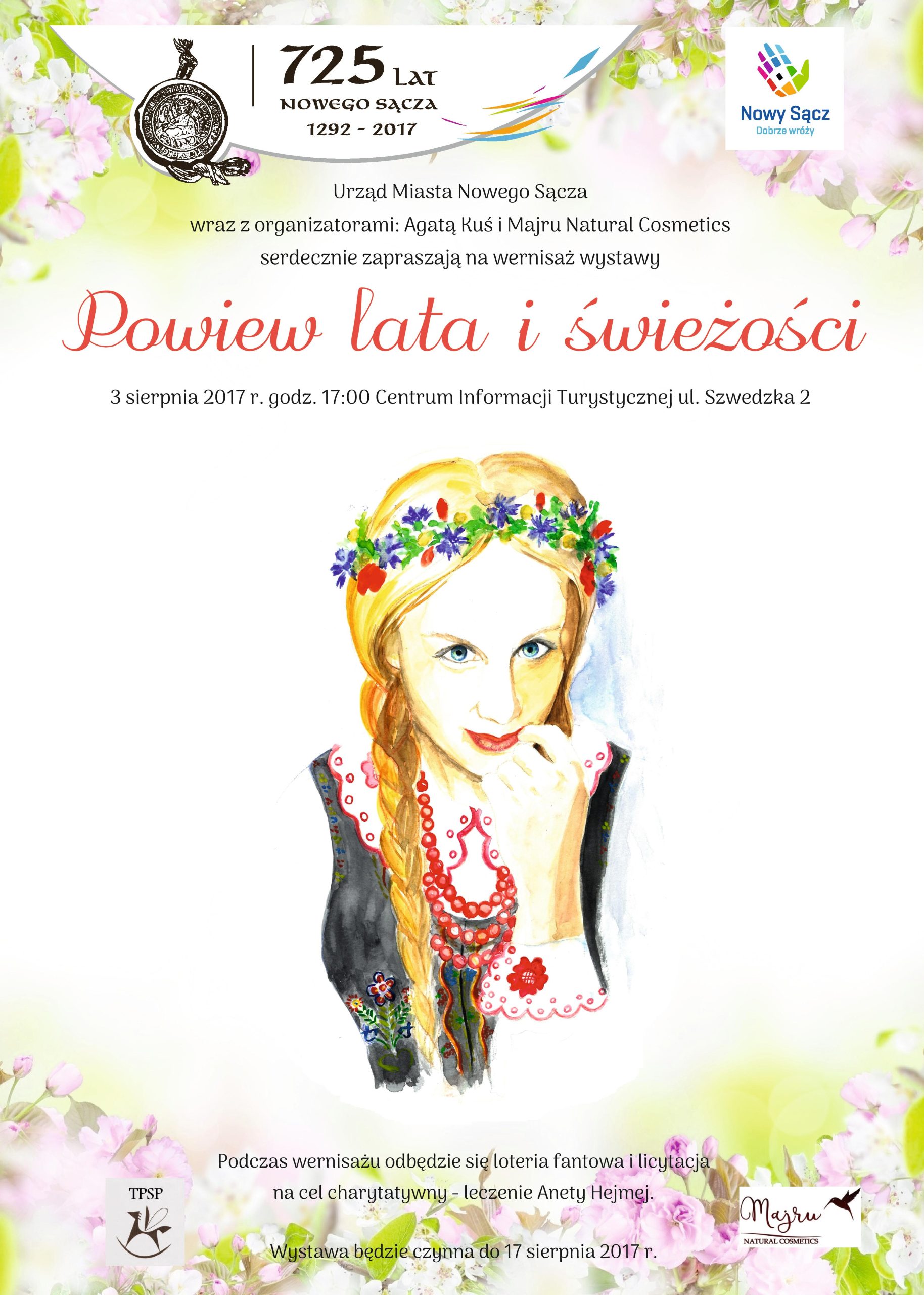 Urząd Miasta Nowego Sącza, wraz z organizatorami: sądecką Artystką Agatą Kuś oraz pierwszą w Nowym Sączu lokalną manufakturą kosmetyków naturalnych Majru – Natural Cosmetics zapraszają serdecznie wszystkich zainteresowanych na wernisaż wystawy pt.